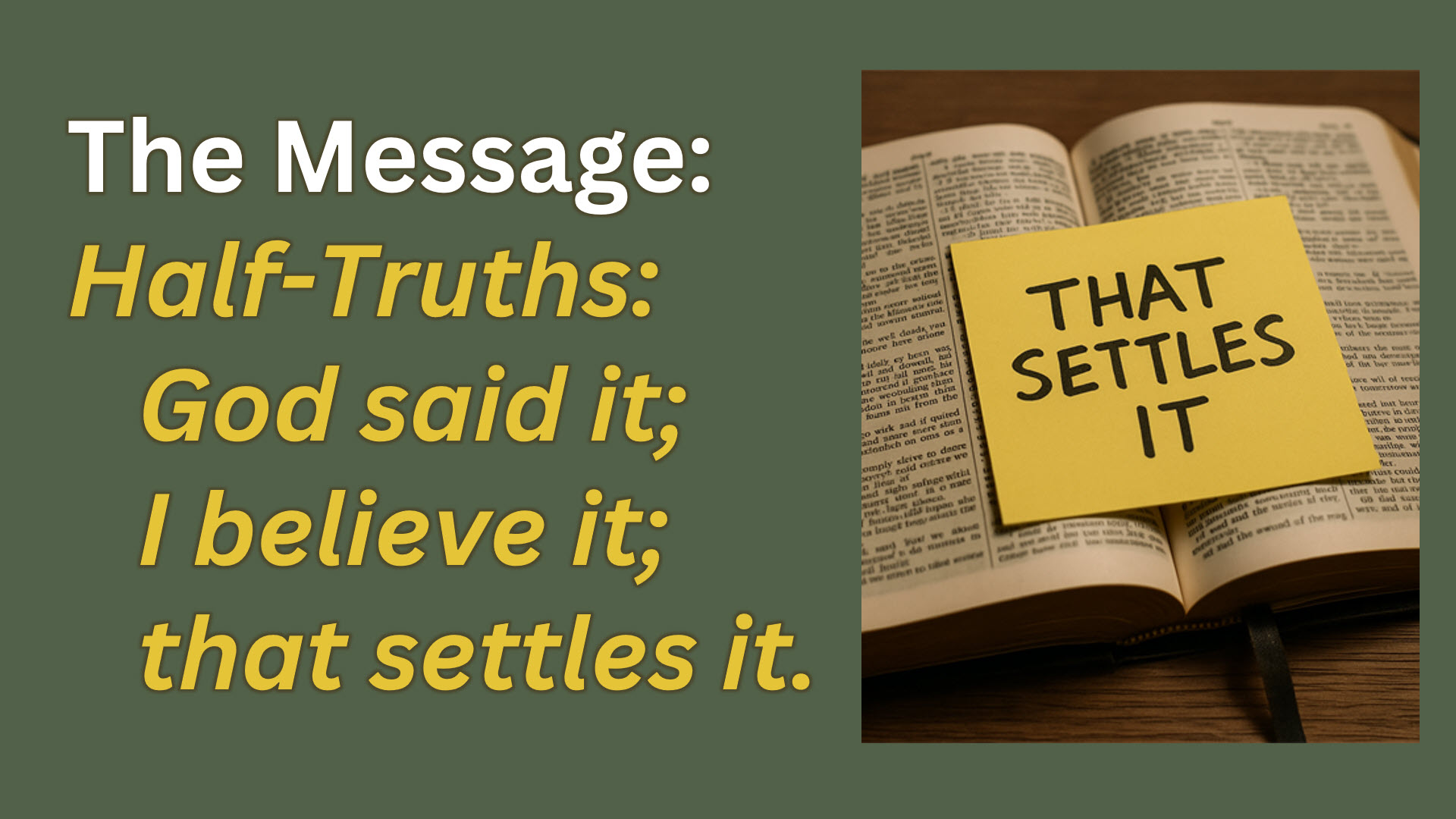 Half Truths: God said it; I believe it; that settles it.